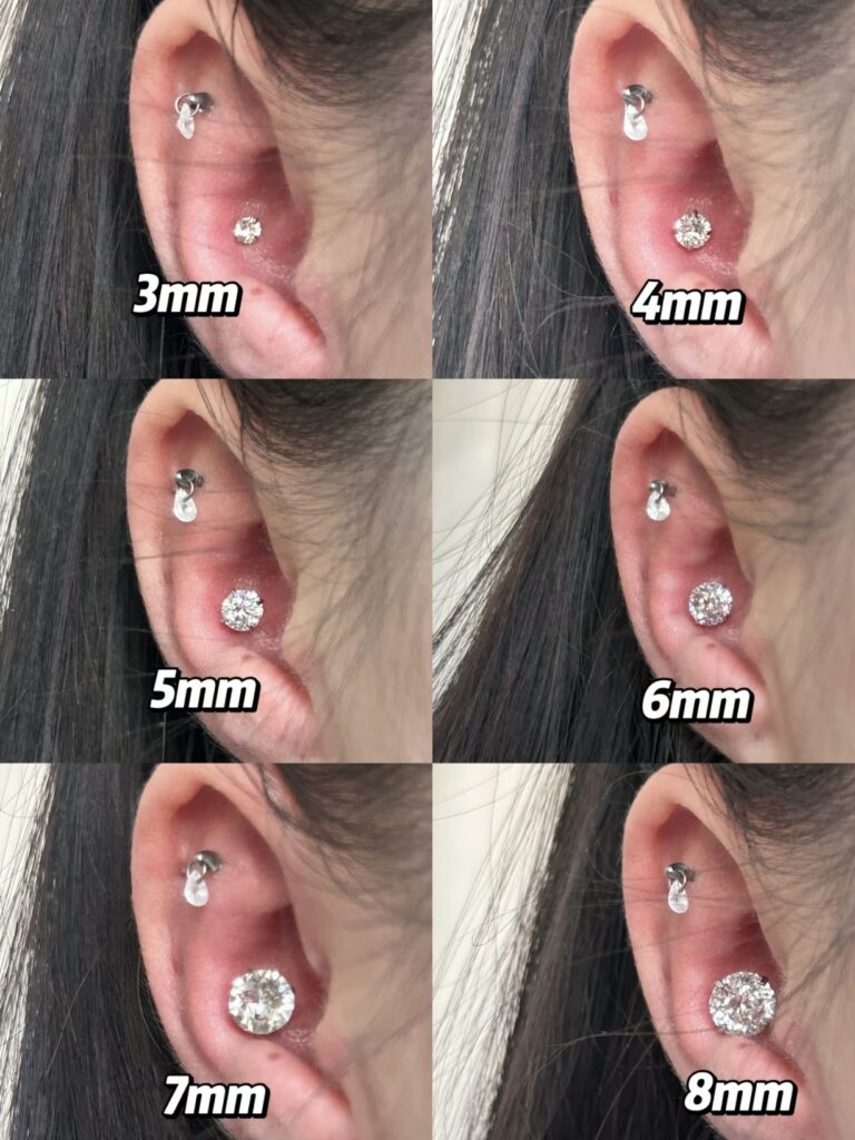 - Ear cartilage: Initial insertion size is 8-10mm (to prevent swelling and ensure proper fit), and it will be changed to 6-8mm after healing.