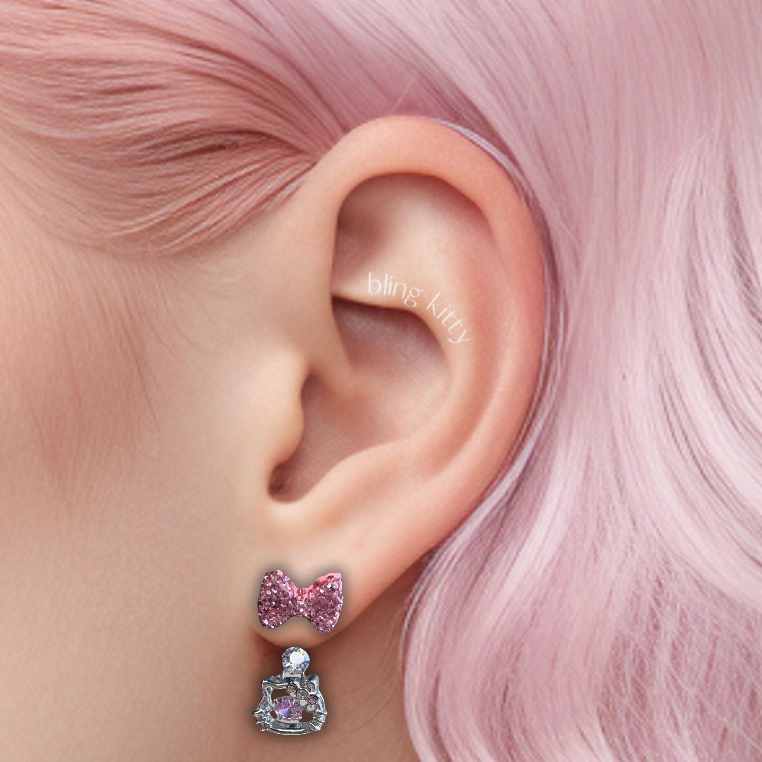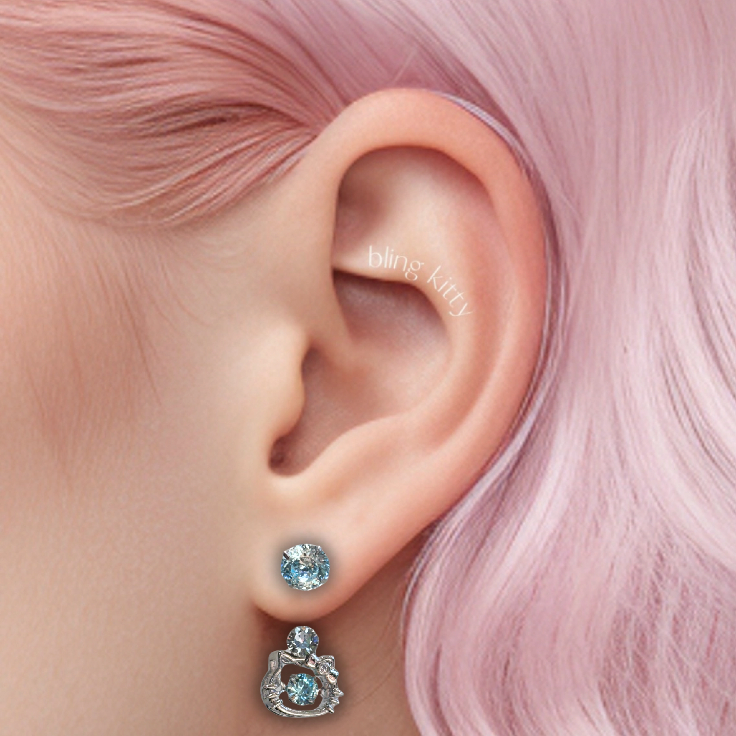 There are a wide variety of choices for earlobe piercing. You can easily find the style that suits you. Most of the earrings in our home can be worn on earlobes. Whether it's the simple zircon diamond, the dazzling horseshoe ring pendant or the cute kitten earrings, you can choose! The earlobe is the softer part of the ear, which can be stretched and adapted to large stud earrings of 16G, 18G and 20G. This wider area is perfect for trying and personalizing your unique earring style. Whether it's the simple single stud or the ever-changing layering, we guarantee that no matter what your beauty needs are, bling kitty can meet them.