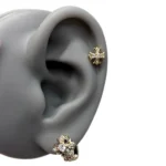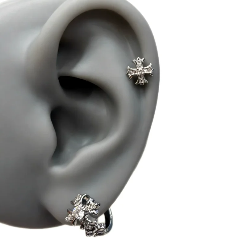 Location: One perforation is at the upper part of the Helix, and the other is at the Antihelix or the Forward Helix.