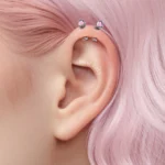Location: One perforation is at the upper part of the Helix, and the other is at the Antihelix or the Forward Helix.