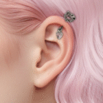 Location: One perforation is at the upper part of the Helix, and the other is at the Antihelix or the Forward Helix.
