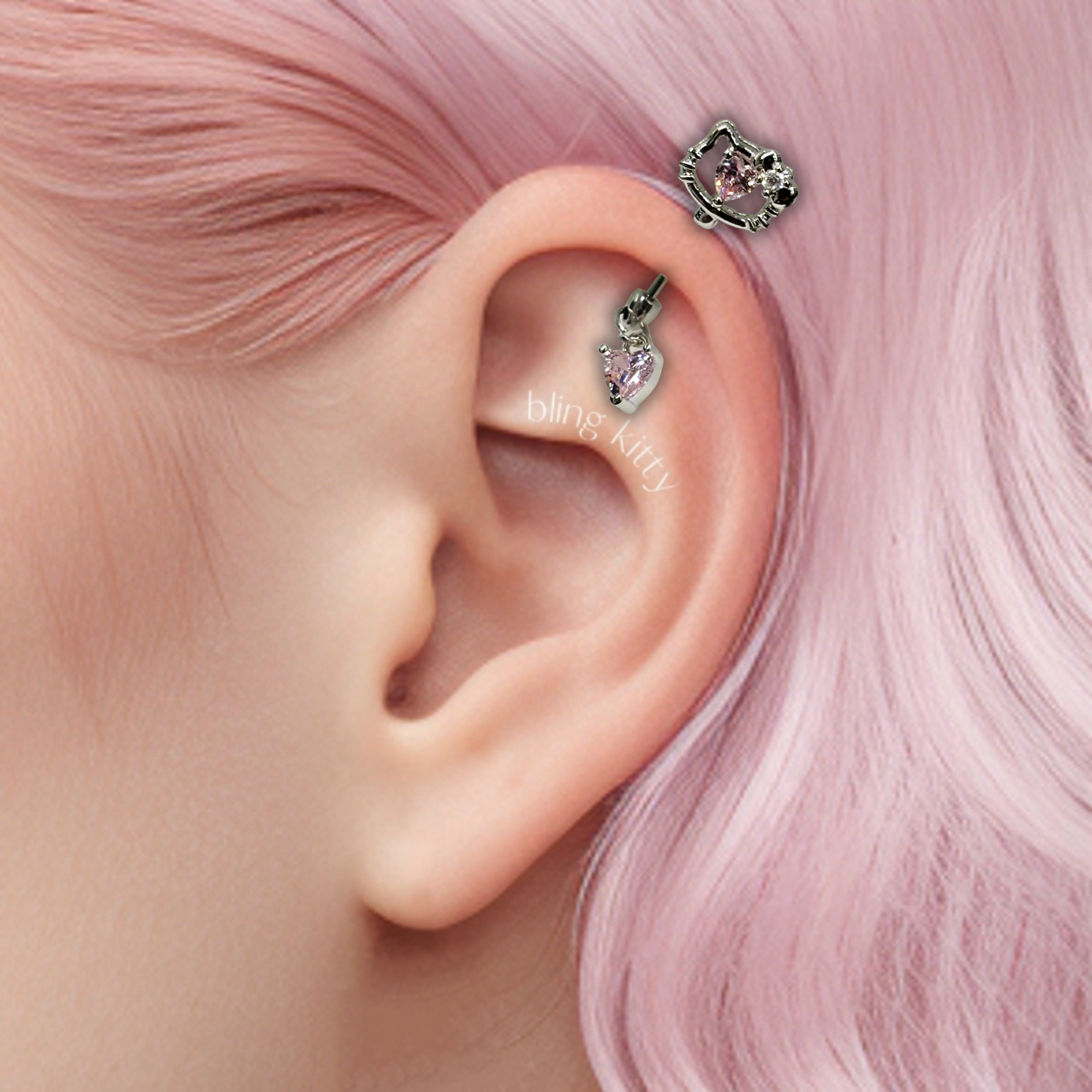 There are a wide variety of choices for earlobe piercing. You can easily find the style that suits you. Most of the earrings in our home can be worn on earlobes. Whether it's the simple zircon diamond, the dazzling horseshoe ring pendant or the cute kitten earrings, you can choose! The earlobe is the softer part of the ear, which can be stretched and adapted to large stud earrings of 16G, 18G and 20G. This wider area is perfect for trying and personalizing your unique earring style. Whether it's the simple single stud or the ever-changing layering, we guarantee that no matter what your beauty needs are, bling kitty can meet them.